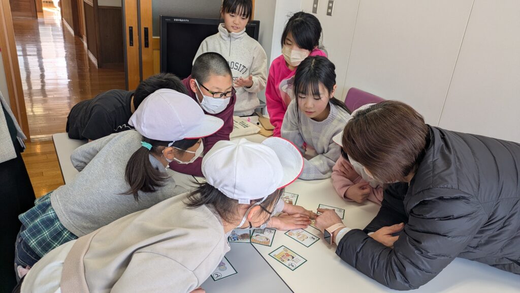 今回使用した方言かるたは、田村方言かるたと都路方言歳時記の作成実行委員会が2022年に作成したもので、都路小学校への出張ちょこっとでもたびたび登場しています。